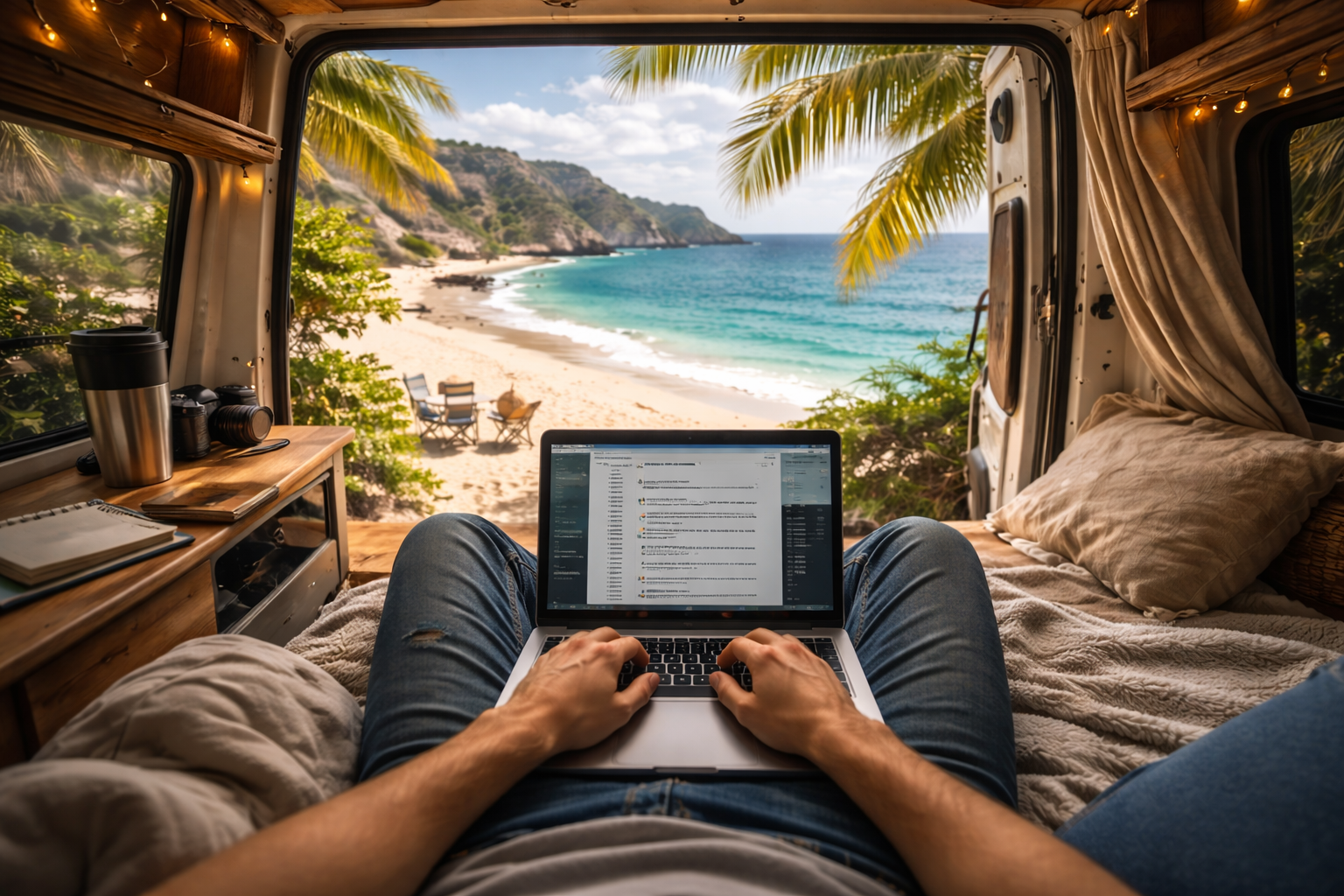 La vie en van, camping-car ou camion aménagé n’est plus réservée aux aventuriers sans attaches. Elle est devenue le mode de vie de freelances, de créateurs de contenu, de développeurs, de consultants, de e-commerçants — des gens ordinaires qui ont simplement décidé que leur bureau pouvait tenir dans 10 mètres carrés et que leur adresse n’avait plus vraiment d’importance.